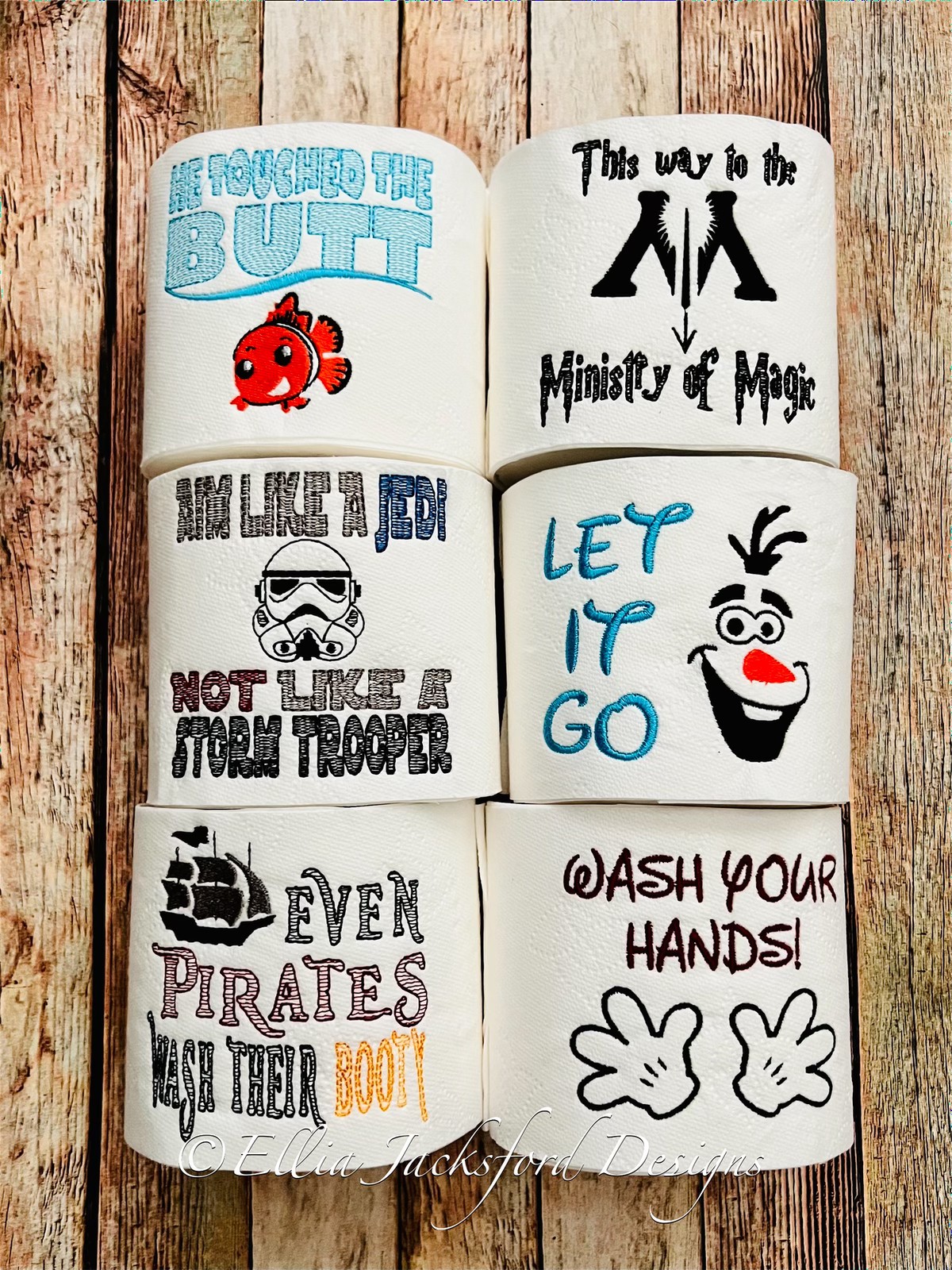 Don’t miss out on this engaging and fun class where you’ll create unique embroidered toilet paper designs from Ellia Jackson Design! Get ready for some laughs with this humorous project. Embroidered toilet paper? Absolutely! It’s perfect for gag gifts, funny presents, or a playful surprise for anyone who appreciates a good joke. The embroidery is applied to the first few sheets of the roll, and each one is gift-wrapped in a clear plastic bag with a bow. Despite the added humor, the toilet paper remains fully functional for its intended use.